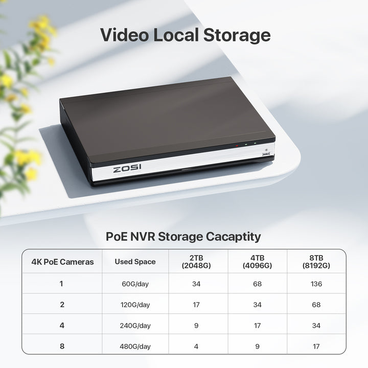 • 24/7 Videoüberwachung: Die 2TB-Festplatte bietet zuverlässige kontinuierliche Aufnahmen rund um die Uhr, einschließlich auf Bewegung basierender Aufnahmen. Genießen Sie kostenlose lokale Speicherung, kein Abonnement erforderlich.