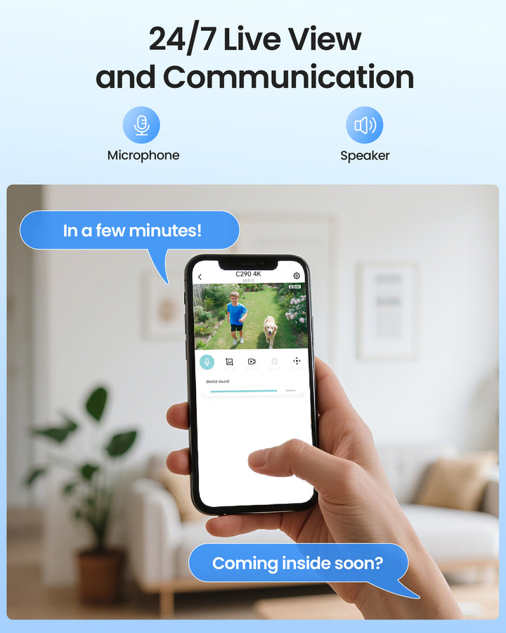 • Fernzugriffs: Sehen Sie sich Live-Aufnahmen an und überprüfen Sie sie auf Ihrem Telefon. Ob Sie nach der Familie sehen, Ihren Hund beruhigen oder einfach nur Hallo sagen möchten – mit der intuitiven ZOSI Smart App ist alles möglich.
