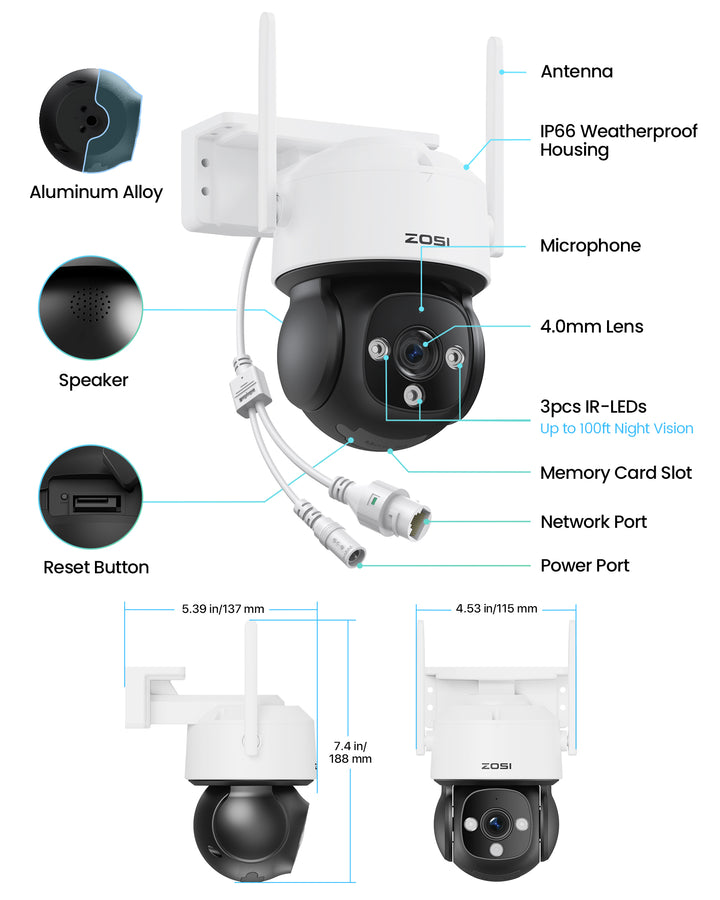 Save videos locally with a memory card (up to 256GB) or connect to Zosi NVR for extended storage.